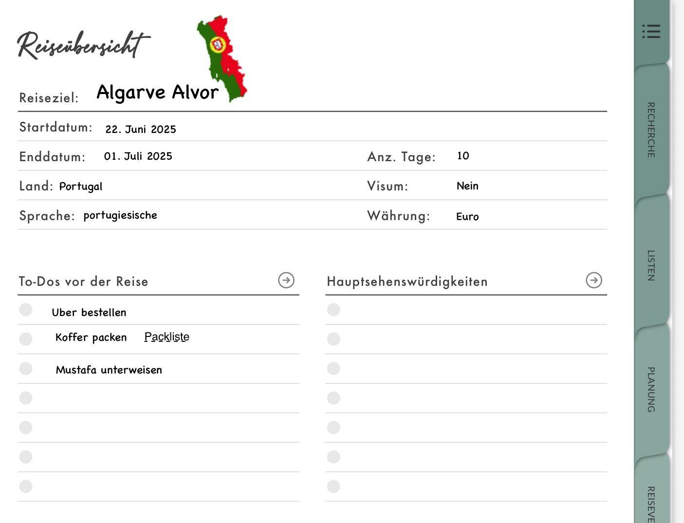 War auf der Suche nach einen Planer für meine Reisen auf dem iPad und mit Goodnote, da bin ich über den Reiseplaner von Better Journals gestolpert und ihn direkt bestellt. Und ich bin sehr zufrieden. Auch gleich alles möglich für mein nächsten Urlaub eingetragen…. Danke Verbesserungen kann ich Euch gern schicken nach einem längeren Gebraucht, wenn gewünscht.
